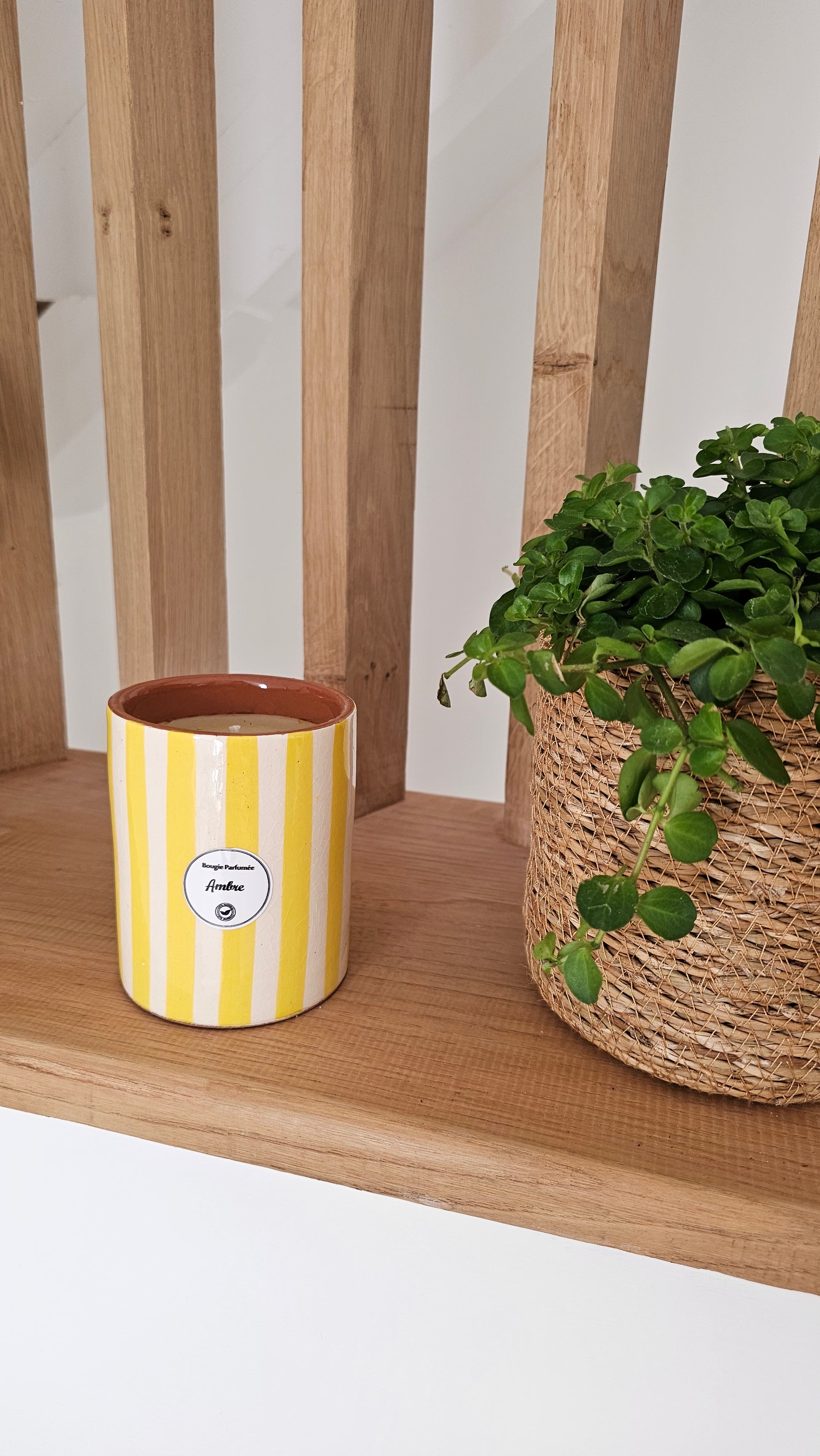 Coulées dans de jolis pots en terre cuite rayée et colorée, ces bougies apporteront une touche de voyage à votre intérieur par leurs parfums typiques marocains.