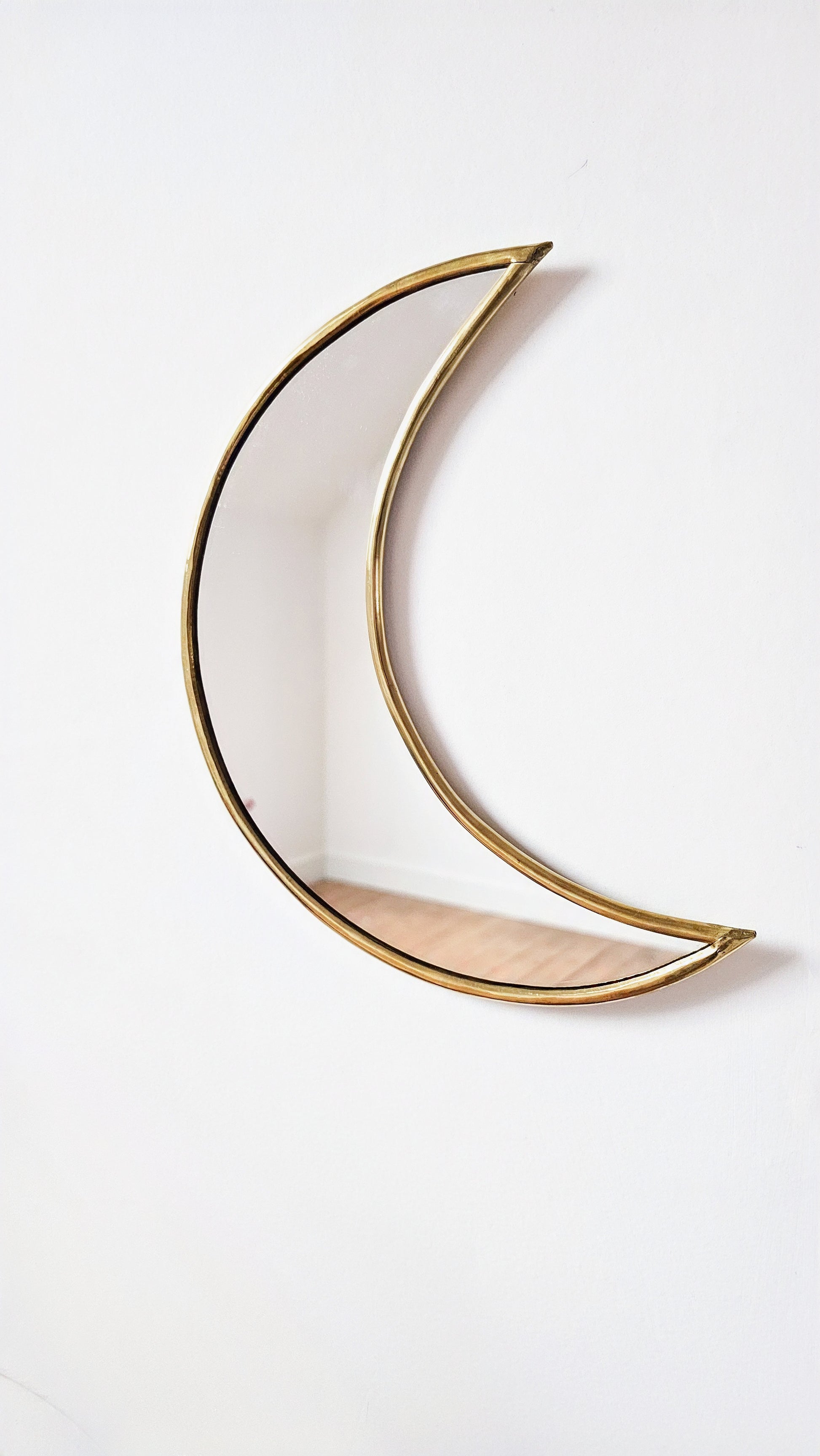 Vous souhaitez donner une touche poétique et lumineuse à votre intérieur ? Ce miroir en forme de lune, entièrement façonné à la main sera parfait ! Son cadre en laiton martelé illuminera votre mur, sa forme douce et arrondie créera une atmosphère apaisante et chaleureuse.